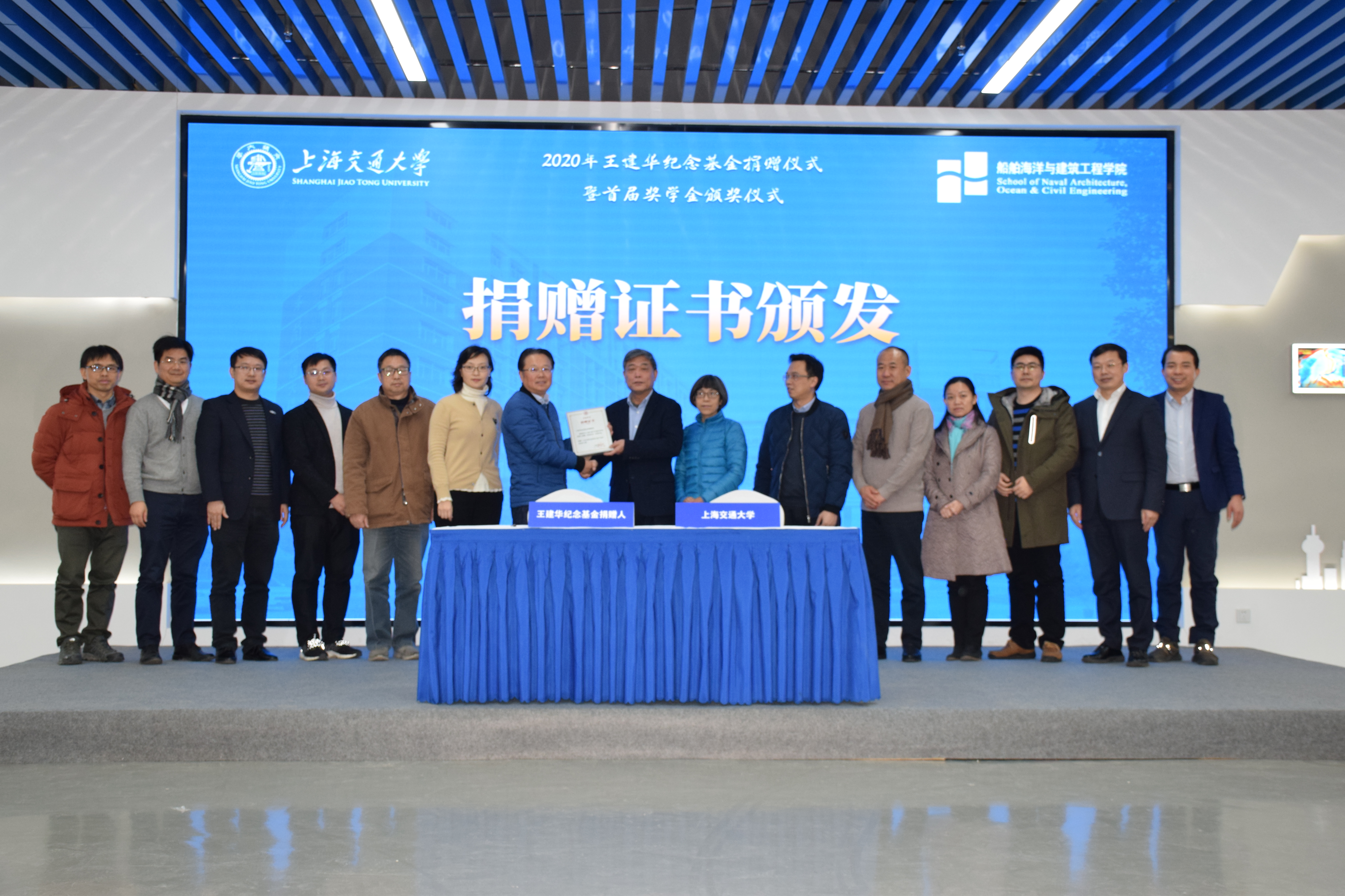 12月16日下午,威尼斯9499登录入口“王建华纪念基金”捐赠仪式暨首届奖学金颁奖仪式在船建学院木兰楼A100举行。上海交大副校长张安胜,发展联络处处长程骄杰,船建学院党委书记周薇、副书记宋续明、土木工程系系主任陈锦剑,王建华教授家属林琼老师,王建华纪念基金校友代表崔海勇、钟俊彬、晋义泉、司漪、禹海涛、杨建军、吴威,以及土木工程系教师代表,首届奖学金获奖学生,校友办、学工办等老师出席本次活动。仪式由船建学院党委书记周薇主持。