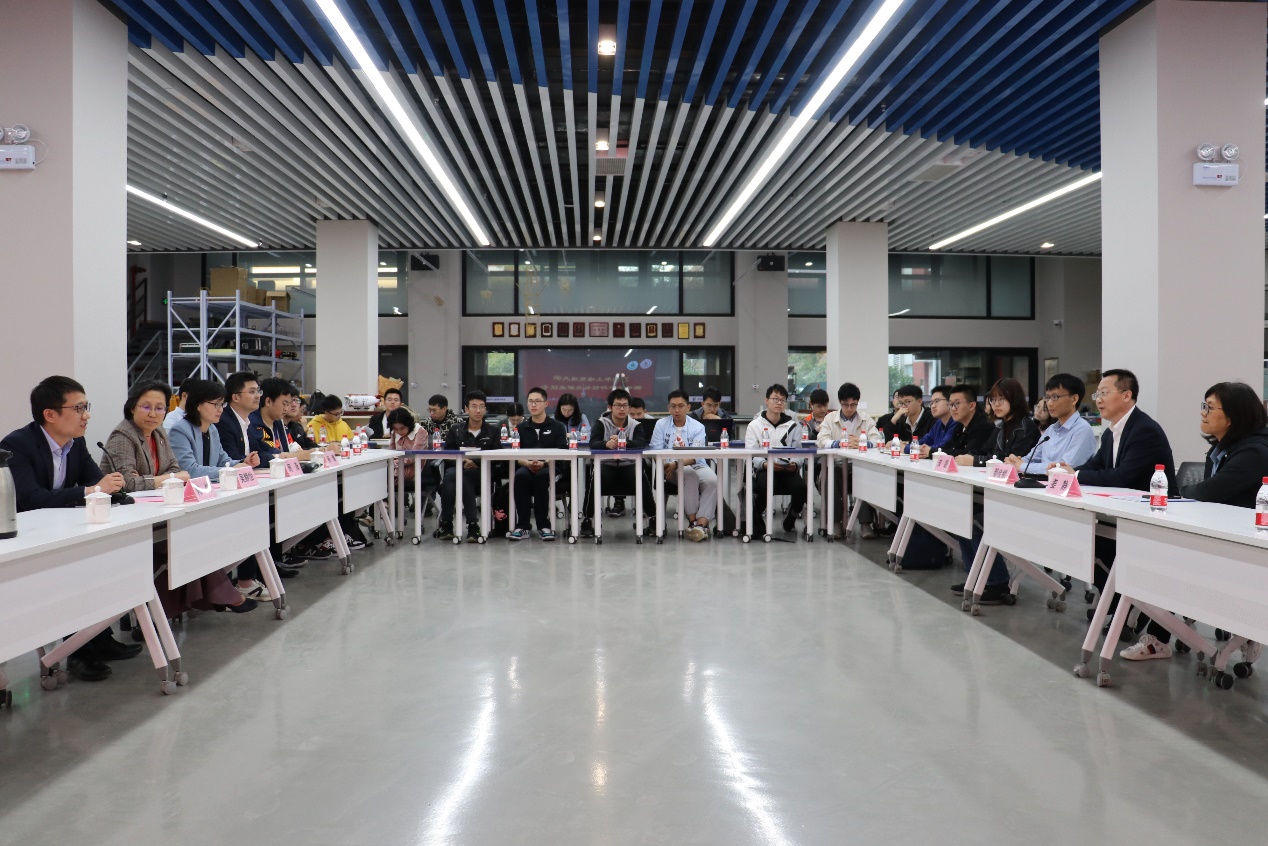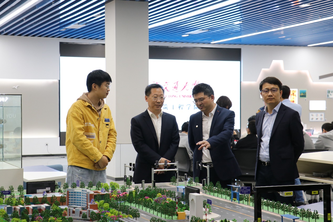 会前,船建学院副院长杨健等陪同参观了校史馆、李政道图书馆、水下工程实验室、学生创新中心船建分中心、虚拟仿真实验室,考察学校办学条件及学生实践项目情况。