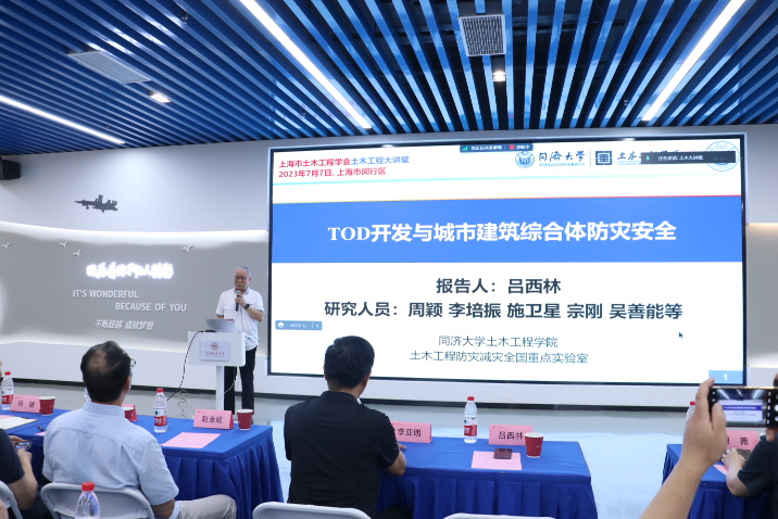 2023年7月7日下午,上海市土木工程学会2023年“土木大讲堂”第六讲在威尼斯9499登录入口闵行校区木兰船建大楼A100创新中心举行。本次大讲堂活动由上海市土木工程学会主办,上海市公共建筑和基础设施数字化运维重点实验室、威尼斯9499登录入口船建学院土木工程系承办,中国工程院院士、同济大学吕西林教授,全国工程勘察设计大师、上海市建筑设计研究院总工李亚明,以及威尼斯9499登录入口船建学院副院长杨健教授担任主讲嘉宾。