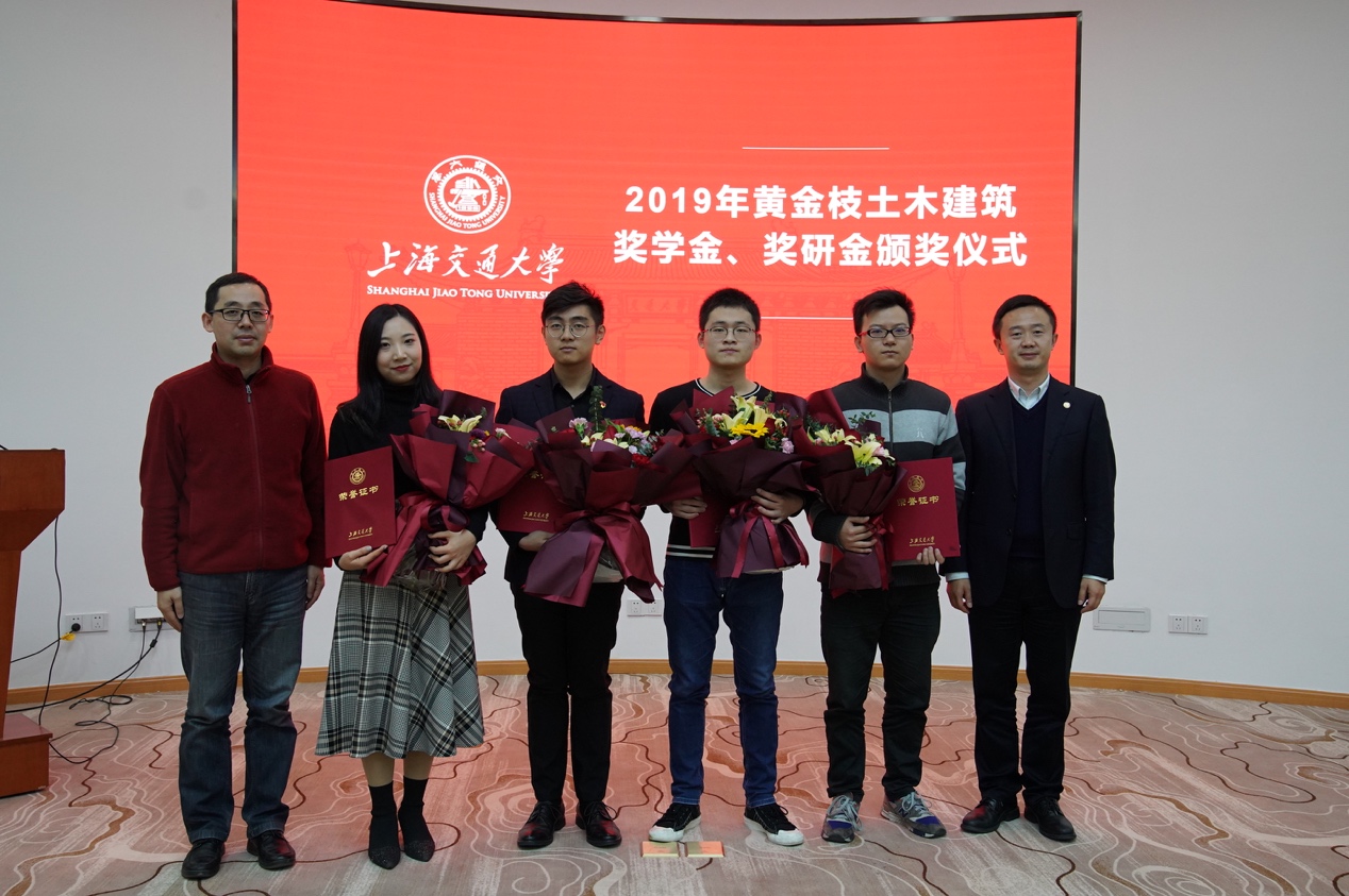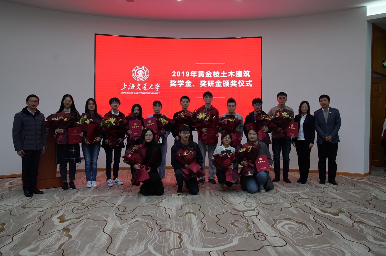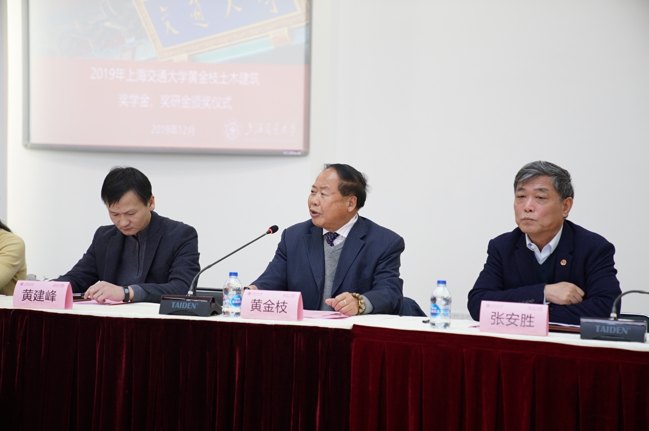 12月20日,威尼斯9499登录入口“黄金枝土木建筑奖学金、奖研金”颁奖仪式在闵行校区网络信息中心大楼九楼会议室举行 。上海黄金枝教育发展基金会理事长黄金枝,基金会秘书长黄建峰,基金会副秘书长陈倩茹,基金会副秘书长王亚民一行出席仪式。上海交大党委常委、副校长张安胜,上海交大教育发展基金会副秘书长黄金贤、秘书长助理于洋,设计学院党委书记方曦、副院长韩挺、建筑学系党支部书记刘士兴、建筑学系副教授张会波、学生工作负责人武超、思政教师车易嬴,威尼斯9499登录入口土木工程系主任陈锦剑、土木工程系助理研究员李明广、校友事务联系人魏燕、团委书记赵恺及全体获奖师生参加仪式。仪式由设计学院副院长韩挺主持。