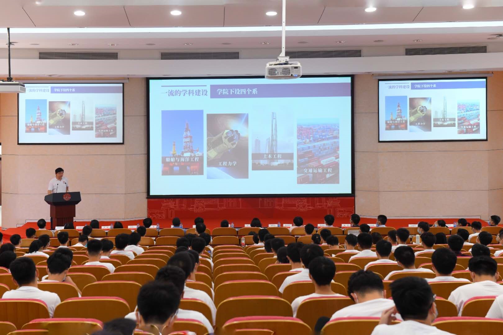 院长廖世俊首先做学院发展情况报告。廖院长详细介绍了船建学院的发展历程,阐述了学院一流的学科建设、卓越的人才培养、雄厚的师资队伍、领先的实验设施等。他提到,年轻人应当瞄准前瞻性基础研究与原理创新,投身原创性、系统性、引领性的研究工作,涵养高远的学术志向与服务国家重点行业的价值追求。